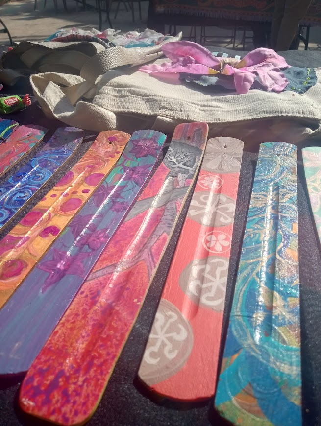 It was a bit chaotic at times. The stand which I so lovingly worked on kept getting knocked down by, rather ironically, the wind (of course it was gonna be breezy during set-up… of course! XD). It was supposed to be a mock-up of an inner house scenario, with a small little couch (on the table, next to the incense sticks) and towering paintings above. Alas, the house tumbled down. But! Some wonderful people helped me deal with the stand (I guess you could say they were… they were… stand-up folks)–and it worked out in the end.